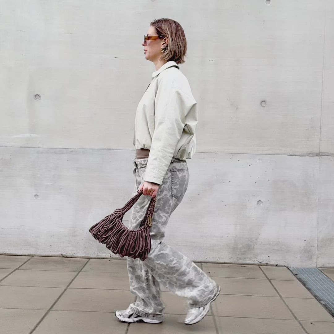 Die Lou Bag bringt Bewegung in deinen Look. Diese einzigartige Schultertasche besticht durch ihr fließendes Design aus dicken Textilschlaufen, die bei jedem Schritt mitschwingen. In einem zeitlosen Schlamm-/Taupe-Ton gehalten, verbindet sie handwerkliche Raffinesse mit urbanem Lifestyle.